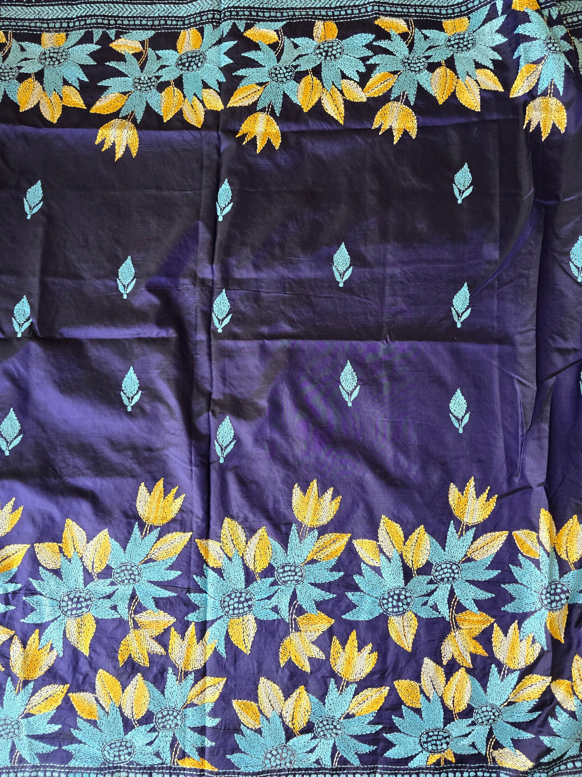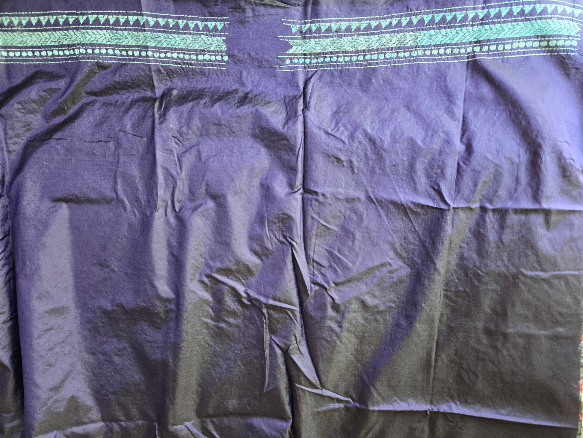 Elevate your style with this Bishnupuri Silk Saree with Kantha work featuring beautiful kantha handwork floral motifs. A timeless weave for festive occasions and elegant gatherings.
