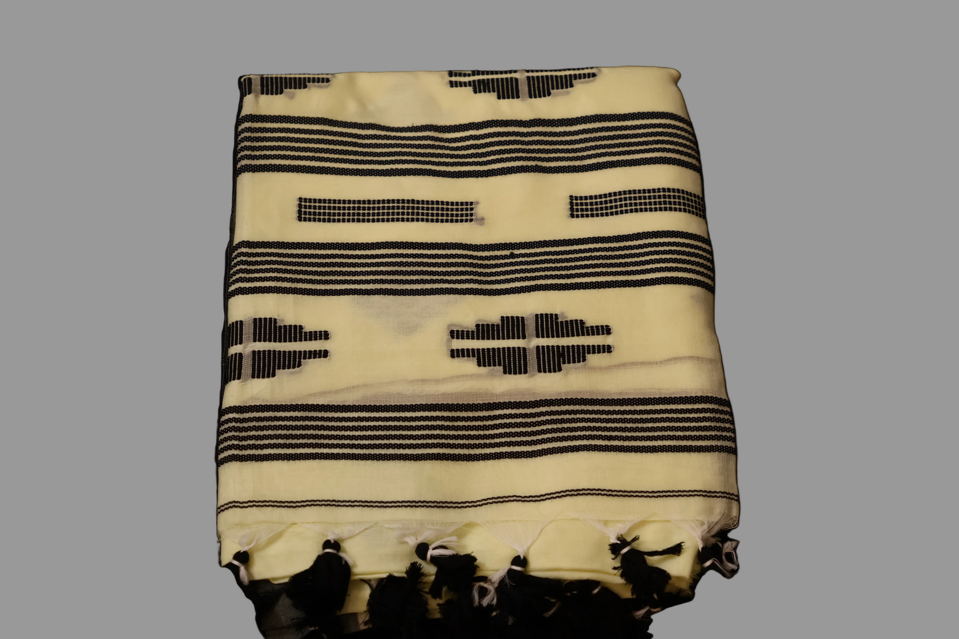 Cream and Black Cotton saree