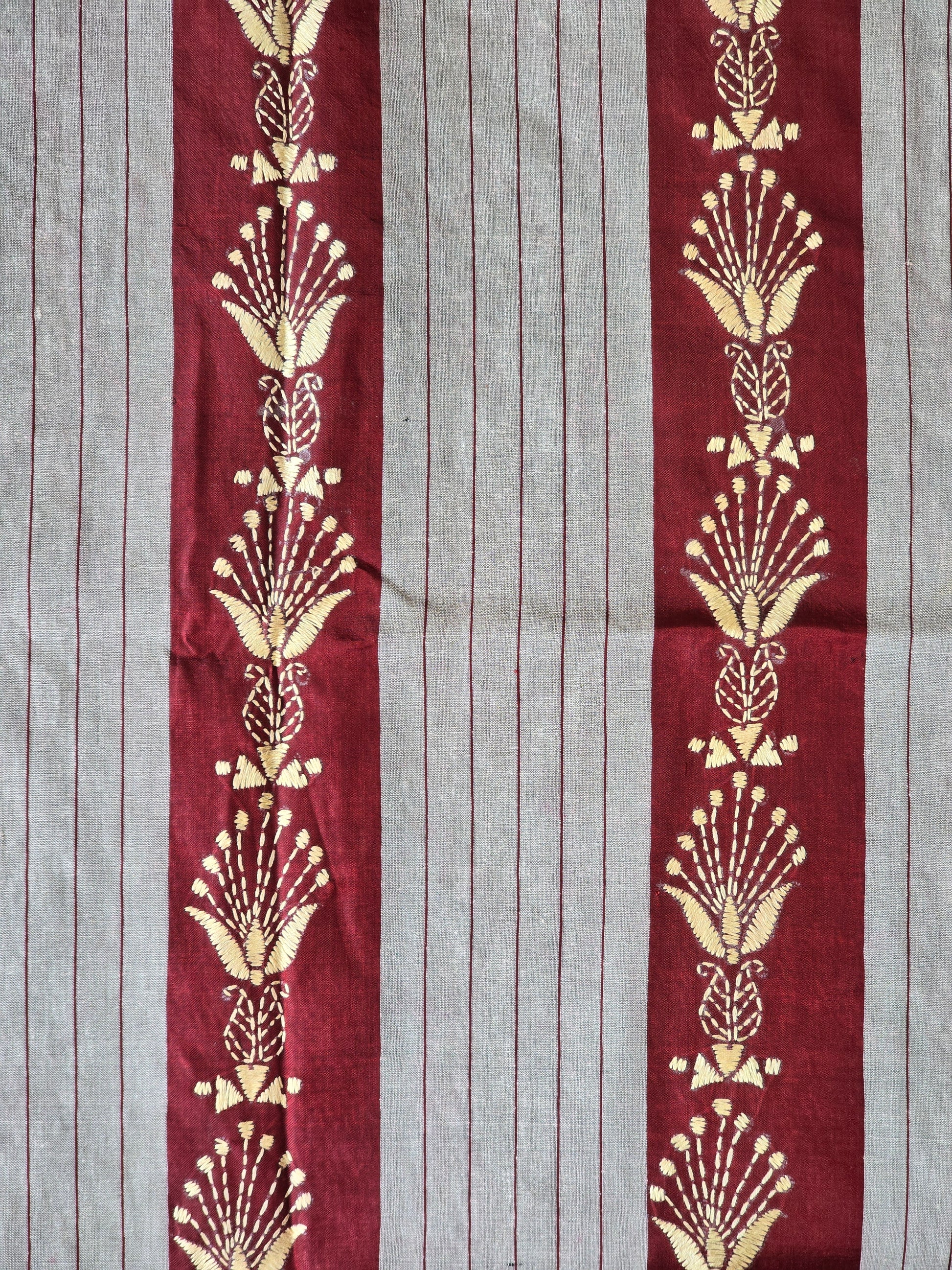 Elevate your style with this Maroon Bishnupuri kantha handwork saree with floral motifs , and blouse. A timeless weave for festive occasions and elegant gatherings.