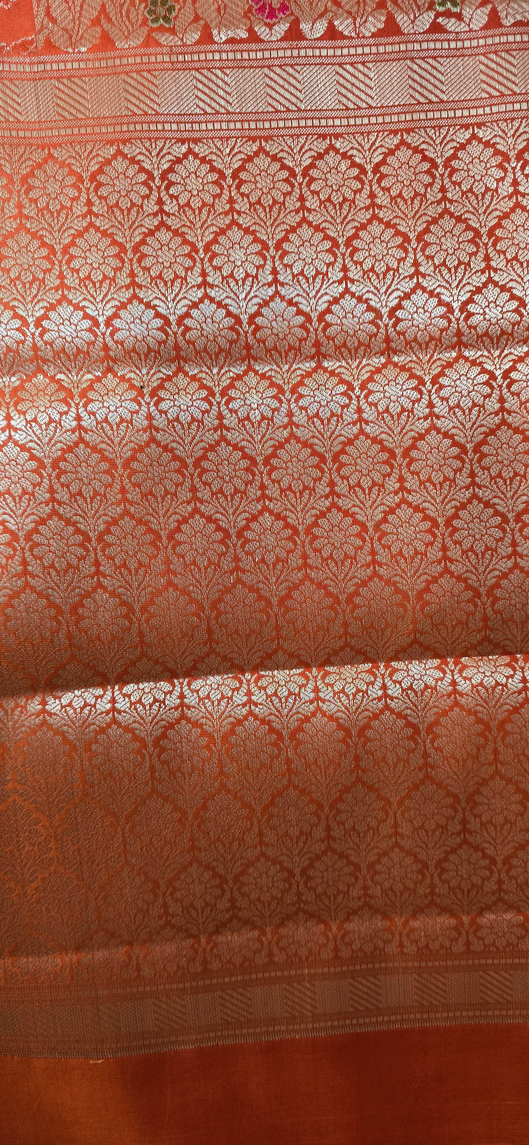 Orange Banarsi Katan Saree